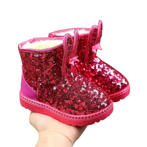 Cekinowe śniegowce dla dziewczynki z uszami królika