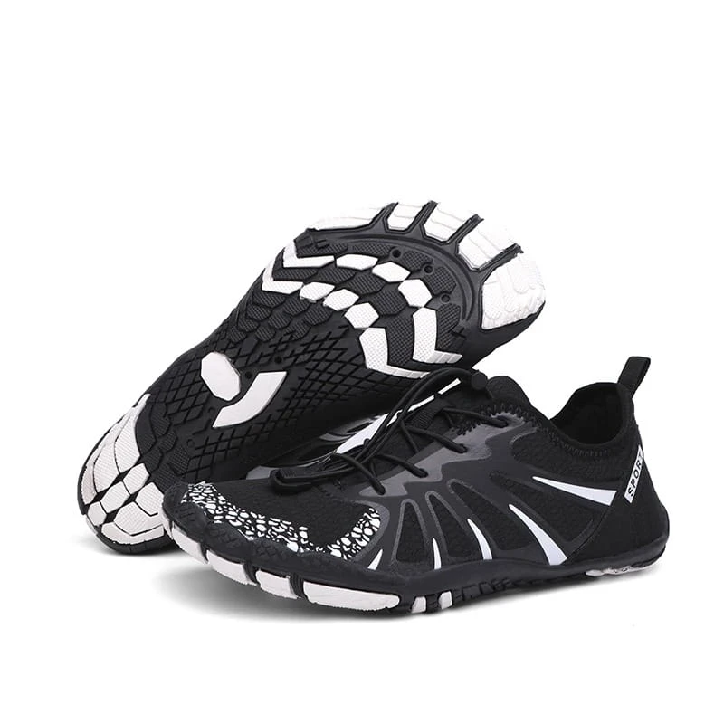 Uniwersalne buty typu barefoot zaprojektowane do sportów wodnych oraz letnich aktywności na lądzie. Model charakteryzuje się szybkoschnącą cholewką, ultra-elastyczną podeszwą z systemem odprowadzania wody oraz szerokim noskiem, który zapewnia naturalną swobodę ruchów stopy.