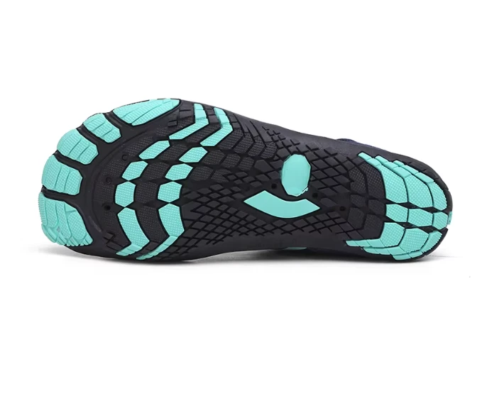 Podeszwa zewnętrzna wykonana z termoplastycznej gumy posiada specjalne otwory drenażowe, które umożliwiają natychmiastowe odprowadzanie wody z wnętrza buta. Agresywny bieżnik zapewnia stabilność na śliskich kamieniach, deskach surfingowych czy basenowych kafelkach. Konstrukcja z szerokim przodem (Wide Toe Box) pozwala na anatomiczne rozłożenie palców, a zerowy drop (Zero Drop) wspiera prawidłową postawę ciała. System szybkiego sznurowania ze stoperem pozwala na błyskawiczne dopasowanie obuwia bez konieczności wiązania.