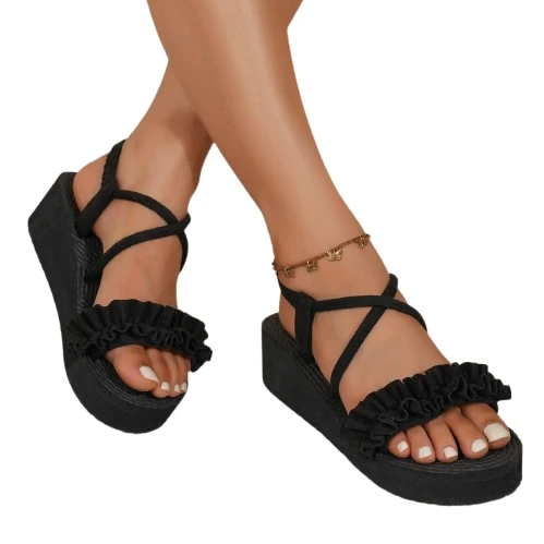 Ich największym atutem jest ultralekka podeszwa wykonana z pianki EVA, która amortyzuje każdy krok i pozwala na noszenie ich przez cały dzień bez uczucia zmęczenia. Cholewka z miękkiej, przyjemnej w dotyku tkaniny zapewnia wyjątkową oddychalność, dbając o to, by Twoje stopy pozostały chłodne i suche nawet w najcieplejsze dni. Wszechstronna konstrukcja inspirowana stylem gladiatorki, z efektownie krzyżującymi się paskami, stanowi modny i jednocześnie praktyczny wybór na wiele różnych okazji. Regulowany, elastyczny pasek z tyłu gwarantuje idealne i bezpieczne dopasowanie do stopy, dając Ci poczucie spersonalizowanego komfortu za każdym razem. Stylowy koturn o średniej wysokości subtelnie podkreśla sylwetkę, dodając Ci kilku centymetrów wzrostu bez rezygnacji ze stabilności i pewności kroku. Są idealnym uzupełnieniem letnich sukienek, szerokich spodni, szortów czy spódnic, bezbłędnie wpisując się w młodzieżowe i casualowe trendy. Poczuj się modnie i swobodnie, ciesząc się butami, które są tak samo wygodne, jak i efektowne.