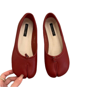 Eleganckie damskie baleriny typu Tabi, wyróżniające się kultowym, rozdzielonym noskiem. Łączą awangardowy design z codzienną wygodą, stanowiąc unikalny akcent w każdej kobiecej stylizacji.