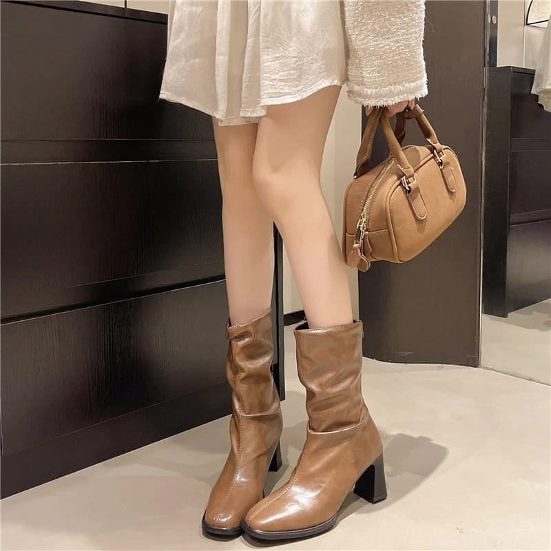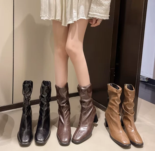 Najmodniejszy Fason: Marszczona cholewka w stylu "slouchy" oraz subtelnie kwadratowy nosek to detale, które wyróżnią Cię z tłumu i podkreślą Twoje wyczucie stylu.