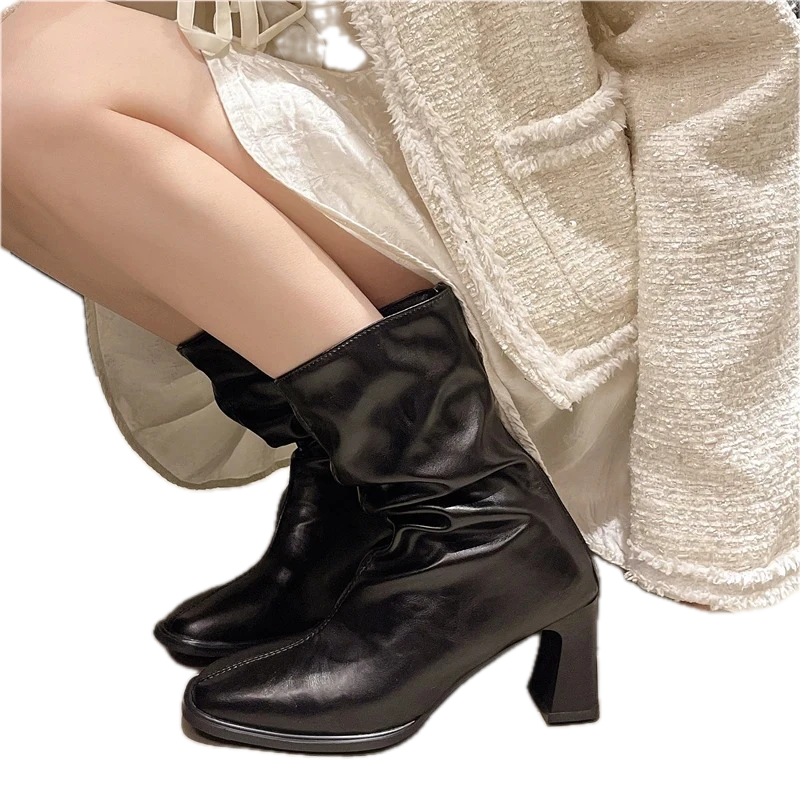 Najmodniejszy Fason: Marszczona cholewka w stylu "slouchy" oraz subtelnie kwadratowy nosek to detale, które wyróżnią Cię z tłumu i podkreślą Twoje wyczucie stylu.