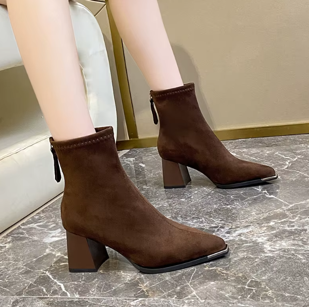 Botki damskie z eko zamszu na stabilnym obcasie!
