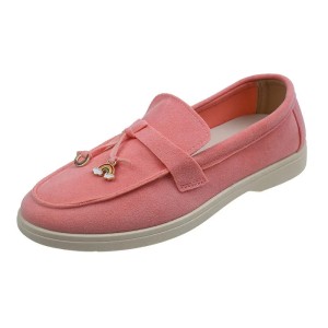 Stylowe i niezwykle wygodne damskie lofersy wykonane z miękkiego zamszu. Klasyczny fason mokasynów został wzbogacony o uroczy detal w postaci kolorowej przywieszki, tworząc idealne połączenie elegancji i codziennego luzu.