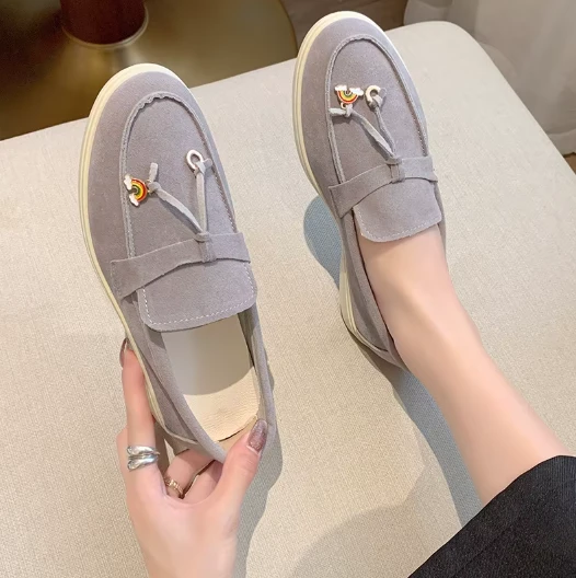 Stylowe i niezwykle wygodne damskie lofersy wykonane z miękkiego zamszu. Klasyczny fason mokasynów został wzbogacony o uroczy detal w postaci kolorowej przywieszki, tworząc idealne połączenie elegancji i codziennego luzu.