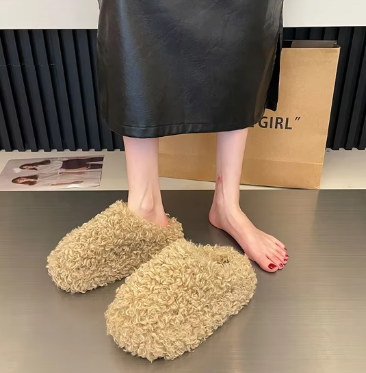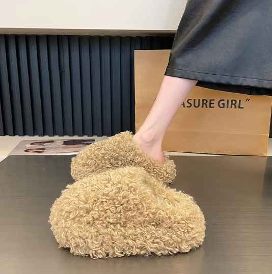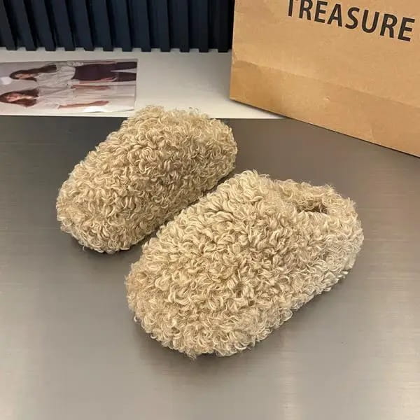 Puszyste Kapcie Domowe Teddy | Ciepłe Buty z Futerkiem Baranka