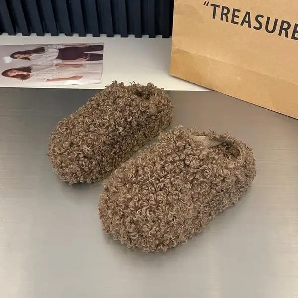 Puszyste Kapcie Domowe Teddy | Ciepłe Buty z Futerkiem Baranka