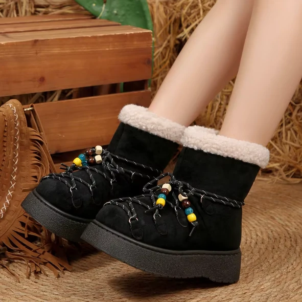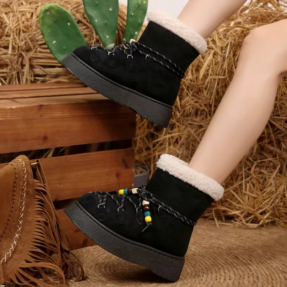 Zamszowe śniegowce boho dla kobiet na mroźne zimy