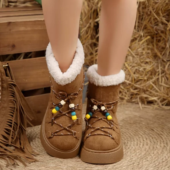 Zamszowe śniegowce boho dla kobiet na mroźne zimy