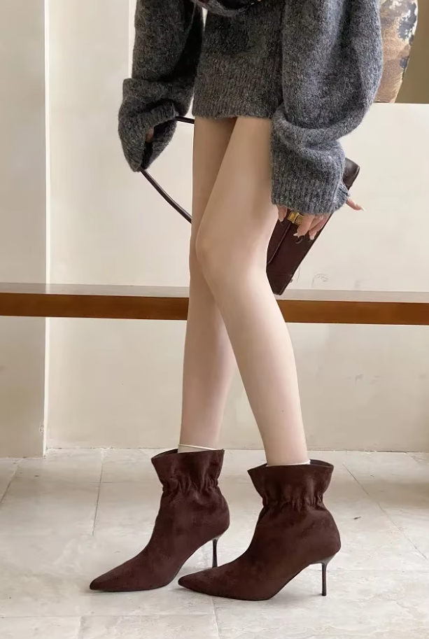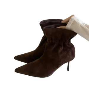 Te stylowe botki damskie z ekologicznego zamszu to must-have w sezonie jesienno-zimowym. Miękki materiał delikatnie otula stopę, a smukły obcas optycznie wysmukla nogę, dodając każdej stylizacji kobiecego uroku.