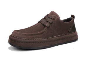 Stylowe męskie półbuty wykonane z wysokiej jakości zamszu ekologicznego. Charakteryzują się grubszą, amortyzującą podeszwą z widocznym przeszyciem oraz klasycznym sznurowaniem. Idealny wybór na co dzień, łączący casualowy design z komfortem noszenia. Dostępne w kolorach czarnym i brązowym.