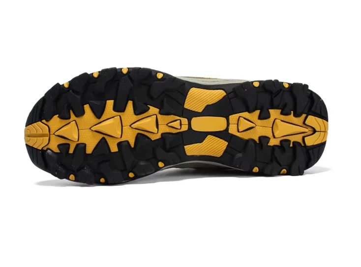 Kluczowym elementem modelu jest podeszwa zewnętrzna z głębokim, wielokierunkowym bieżnikiem, która gwarantuje przyczepność na kamienistych, piaszczystych oraz wilgotnych nawierzchniach. Przednia część buta została wyposażona w gumowe wzmocnienie (toe cap), chroniące palce oraz materiał buta przed uderzeniami o przeszkody terenowe. System sznurowania oparty na metalowych przelotkach i haczykach pozwala na precyzyjne dopasowanie siły docisku cholewki do stopy.