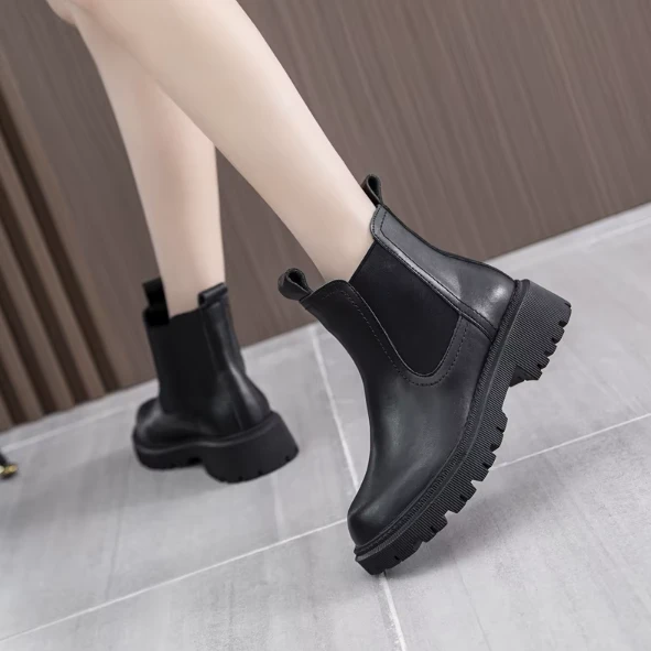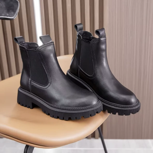 Klasyczny fason sztybletów z elastycznymi wstawkami po bokach to kwintesencja elegancji i wygody. Charakteru dodaje im modna, traktorowa platforma, która nie tylko przyciąga wzrok, ale także świetnie amortyzuje kroki. Praktyczne pętelki oraz elastyczne boki ułatwiają błyskawiczne wkładanie i zdejmowanie butów.