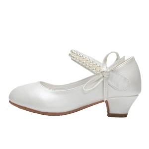 Eleganckie perłowe pantofelki komunijne z perełkami i kokardą