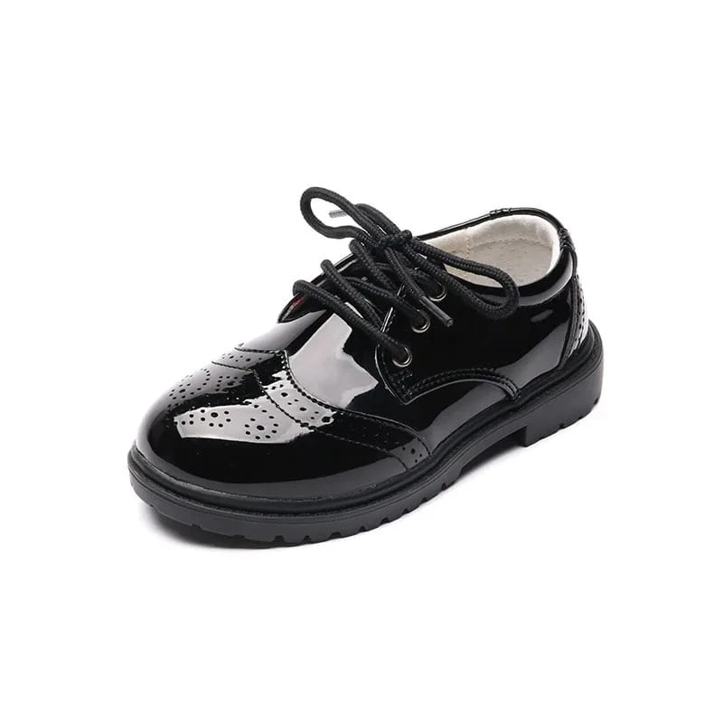 Eleganckie dziecięce półbuty wizytowe wykonane z wysokiej jakości skóry ekologicznej (PU). Klasyczny fason w połączeniu z trwałą, traktorową podeszwą zapewnia stylowy wygląd oraz wyjątkową wytrzymałość, idealną na uroczystości szkolne i rodzinne.