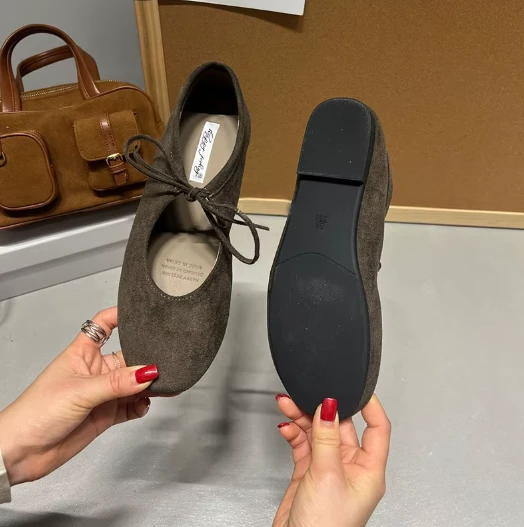 Damskie baleriny zamszowe z wiązaniem – Klasyka w miękkim wydaniu