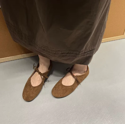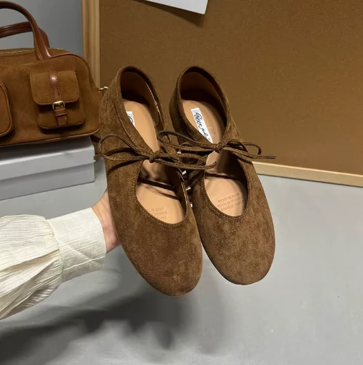 Damskie baleriny zamszowe z wiązaniem – Klasyka w miękkim wydaniu