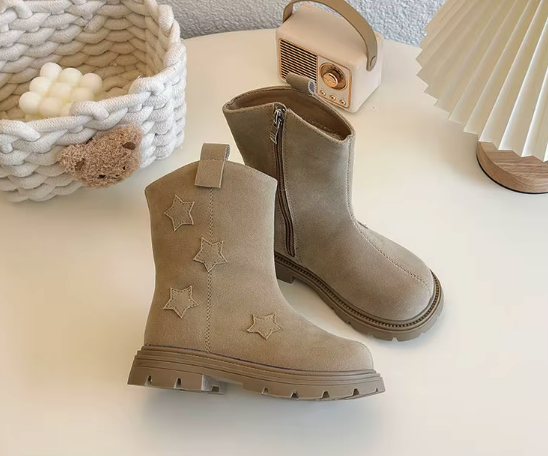 Zamszowe kozaki z gwiazdkami dla dziewczynki!